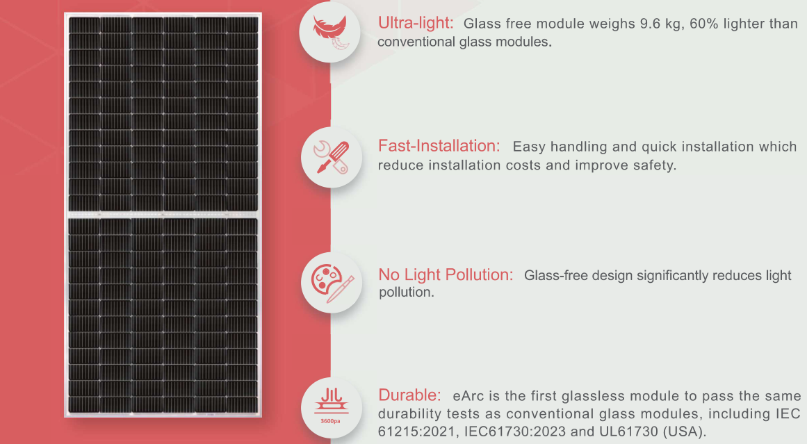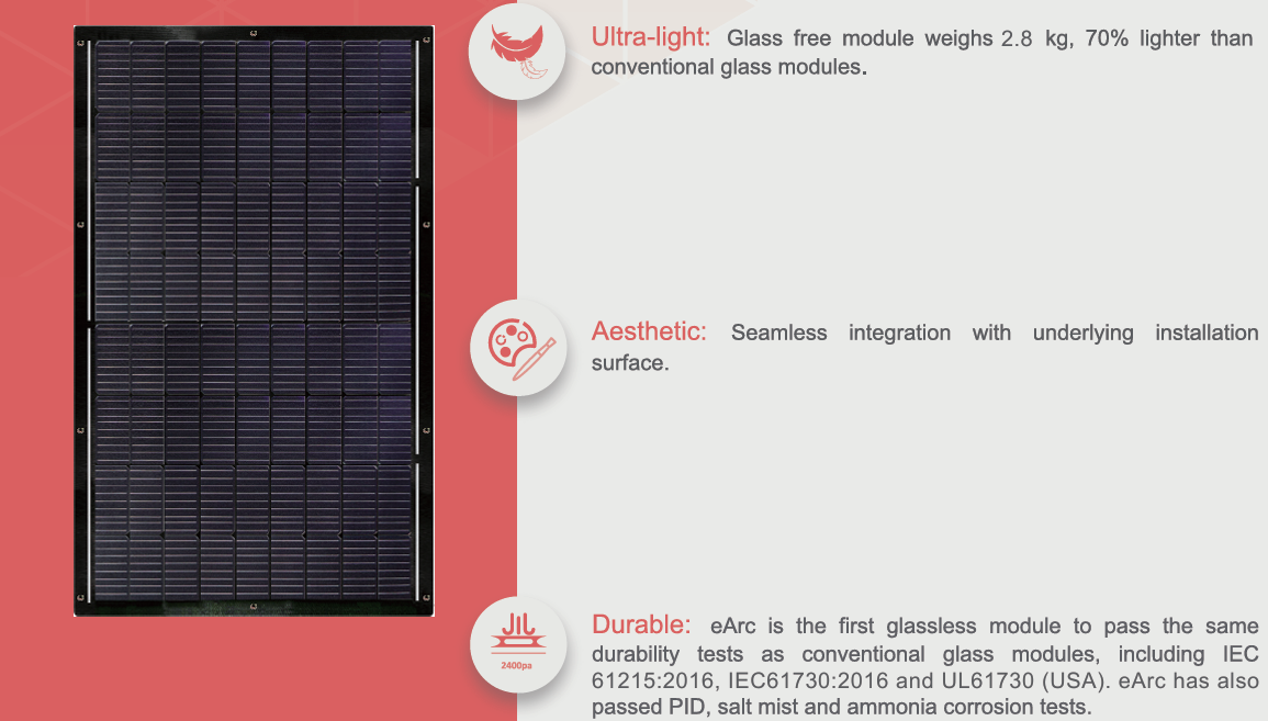轻薄可弯曲,适用于不可承重屋顶、车辆等场景。