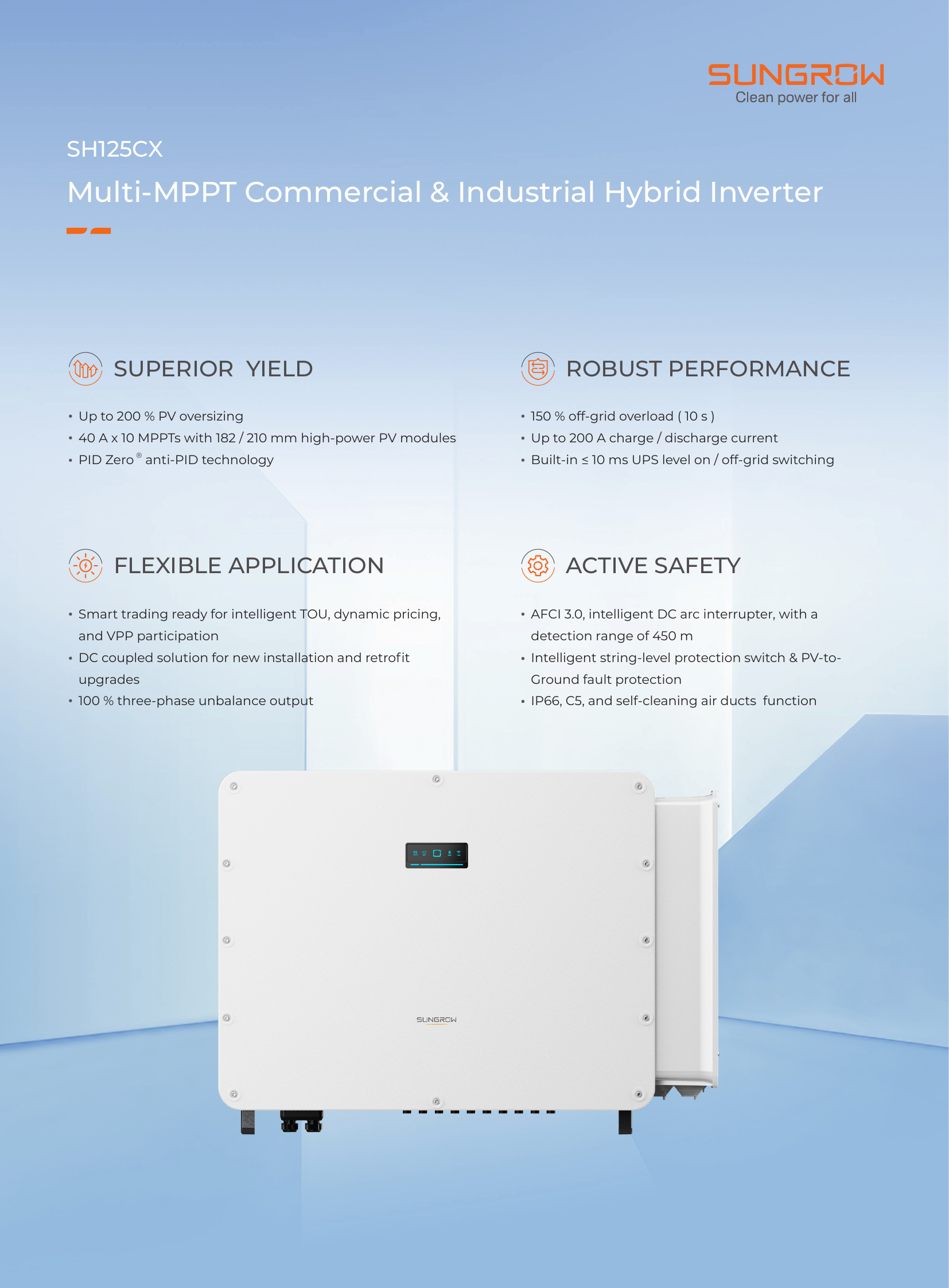 SH125CX · Multi-MPPT Commercial & Industrial Hybrid Inverter